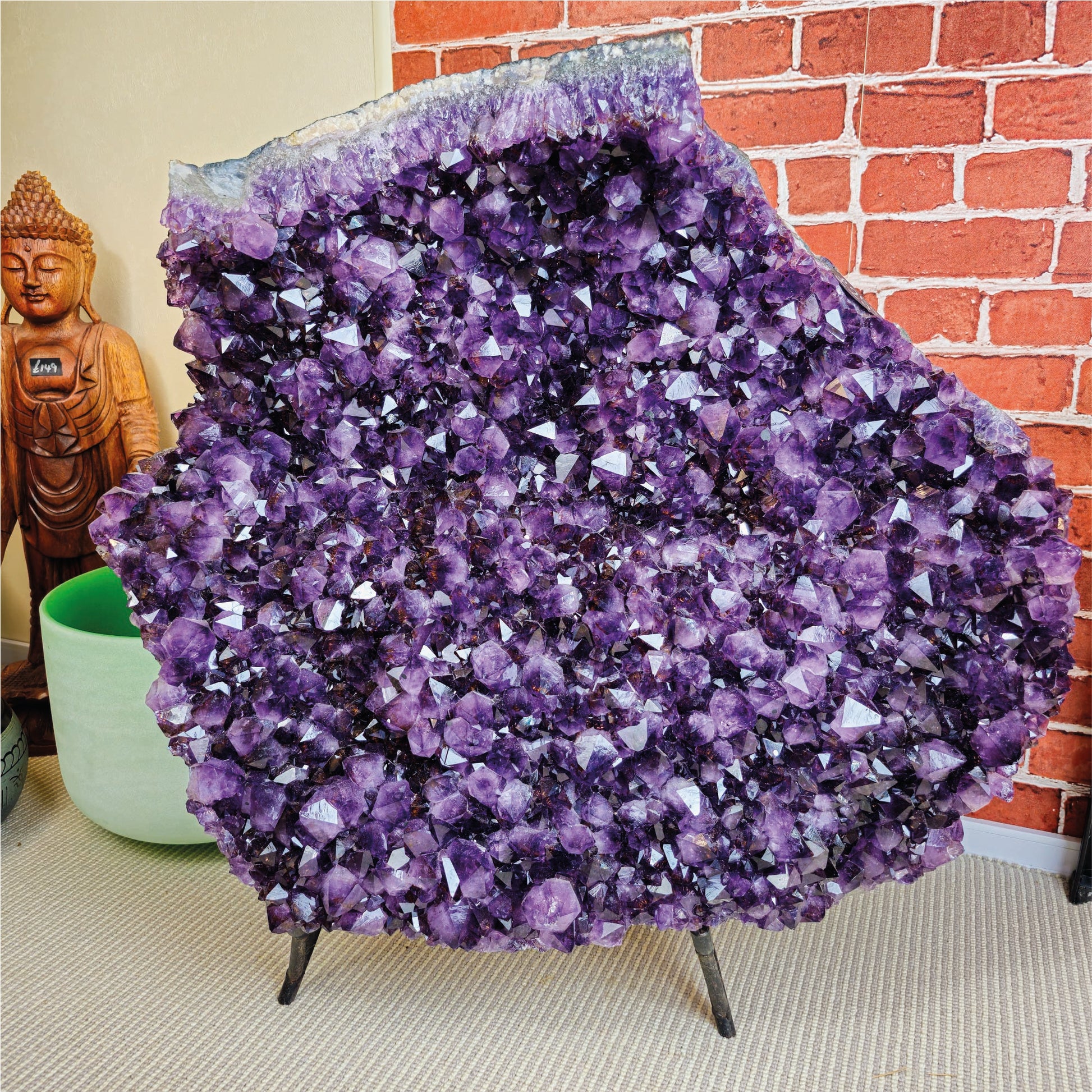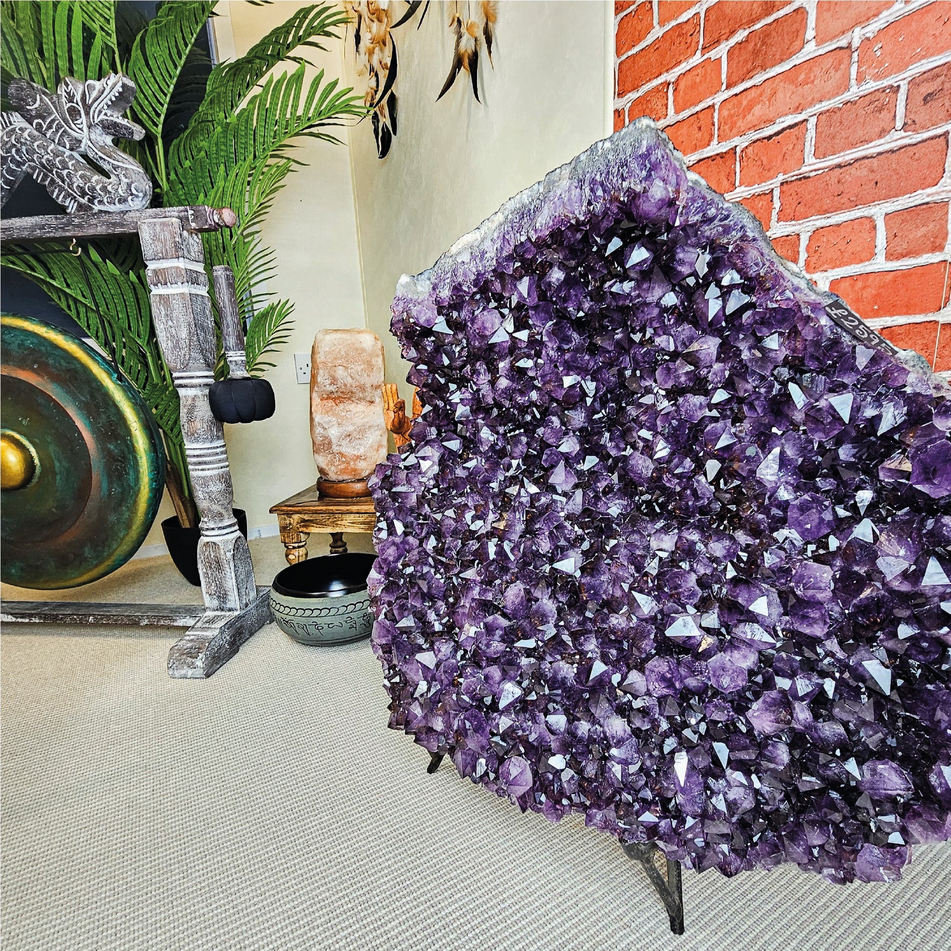 The large dimensions of this amethyst bed make it a stunning focal point for any space, whether it's a serene bedroom, a meditation room, or a living area seeking a touch of natural elegance. The deep purple crystals create a sense of calmness and promote an atmosphere of relaxation and spiritual balance.